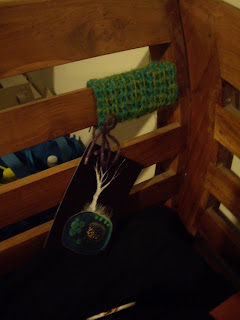 I have this secret (or not so secret, now . . . . !!) basket of fully and half created yarn tags ready to go, and a few public places in mind. But, just to get my feet wet, so to speak, I decided to put a tag in a friends home for her birthday. I attached it when people were around - no one came to ask what I was up to, thank goodness!! So, here it is. The attached card is an image of an original art work - created by another lovely friend (to give her due credit!).